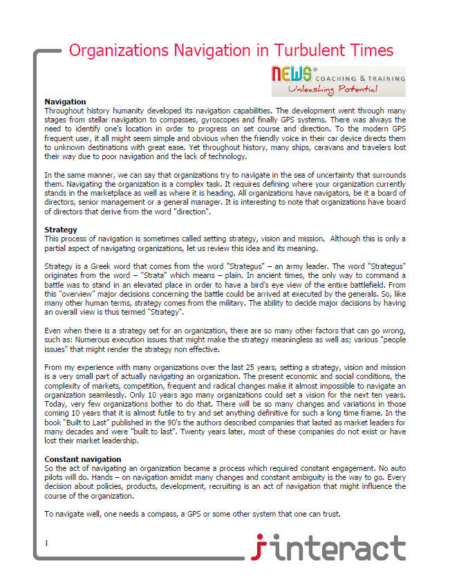 Organizations Navigation in Turbulent Times