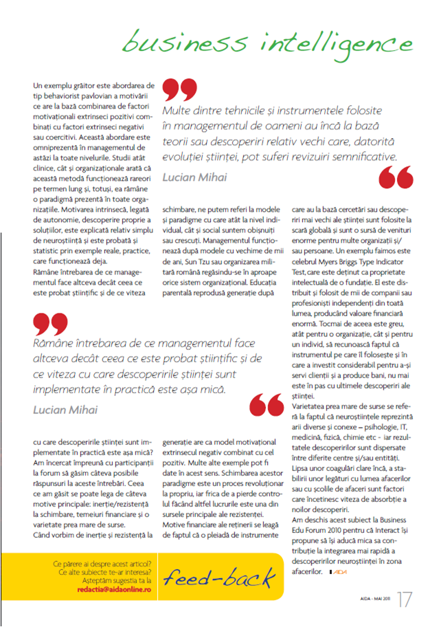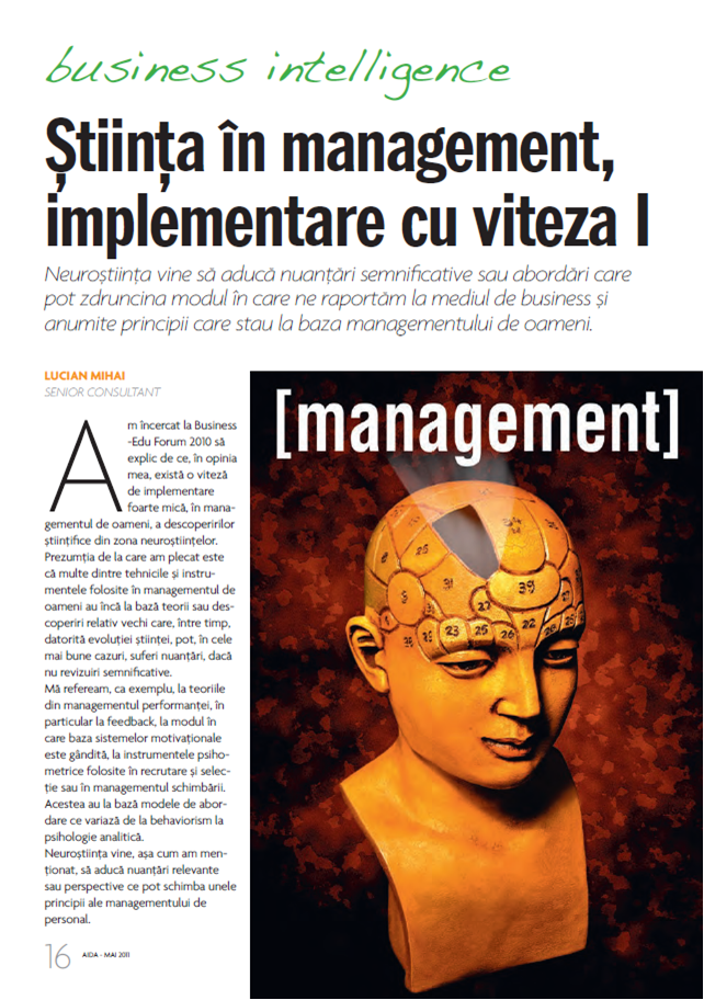 Lucian Mihai: Stiinta in management, implementare cu viteza I, AIDA – mai 2011 May 22, 2011October 3, 2012